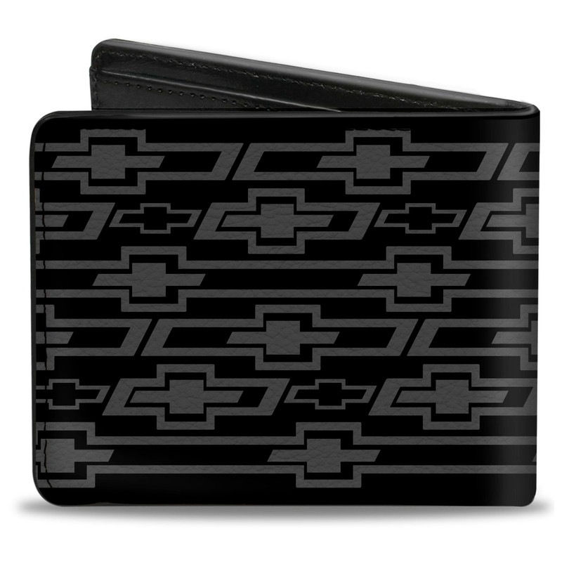 Buckle-Down Men's PU Bifold Wallet-Retro Chevy Bowtie Diagonal Monogram Black/Gray, Multicolor, 4.0" x 3.5", Multicolor, 4.0" x 3.5", Buckle-down Pu Bifold Wallet - Retro Chevy Bowtie Diagonal Monogram Black/Gray