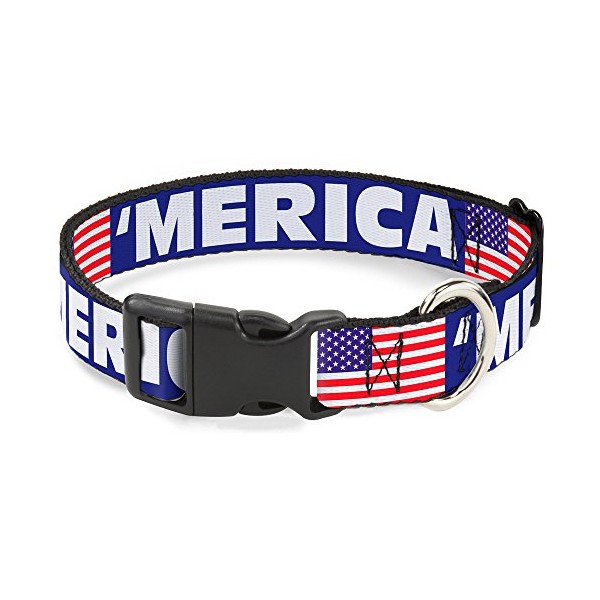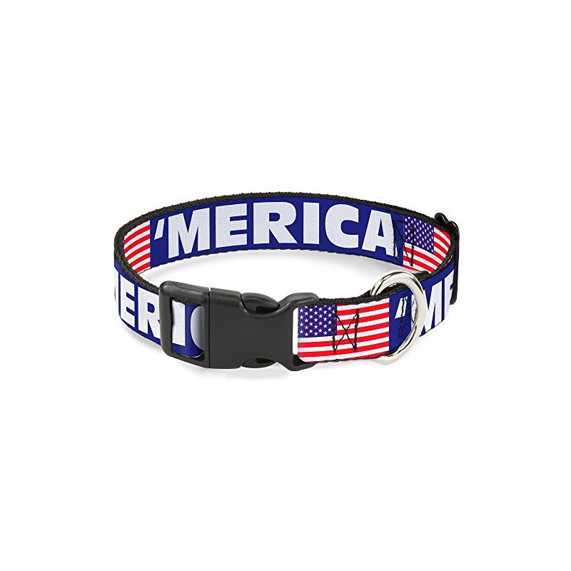 Buckle-Down PC-W30027-WM/Us Flag Blue/White/Red Plastic Clip Collar, Wide Medium/16-23"