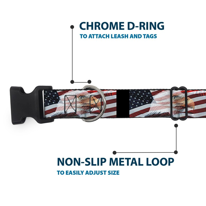 - Buckle-Down Plastic Clip Collar - American Eagle Flags - 1" Wide - Fits 11-17" Neck - Medium