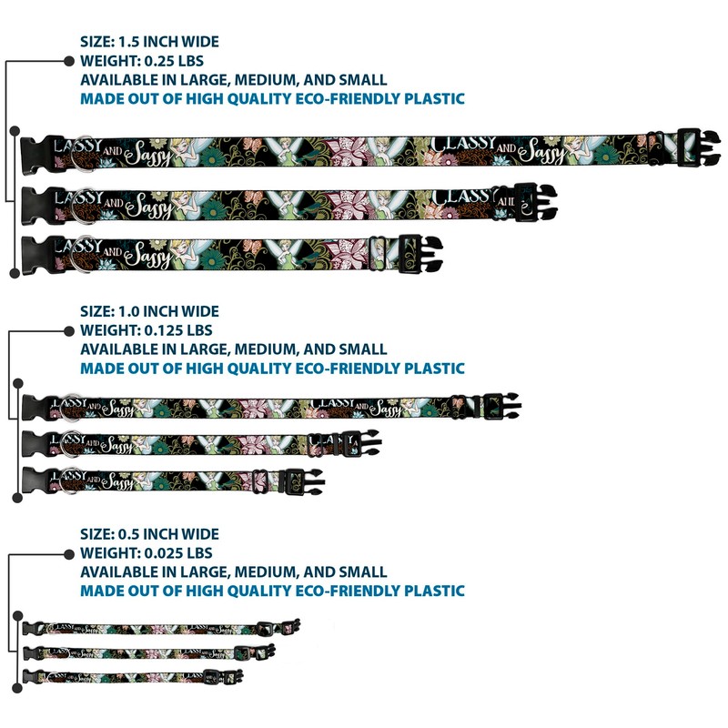 Buckle-Down Plastic Clip Collar - Tinker Bell Floral Collage Classy and Sassy - 1.5" Wide - Fits 18-32" Neck - Large
