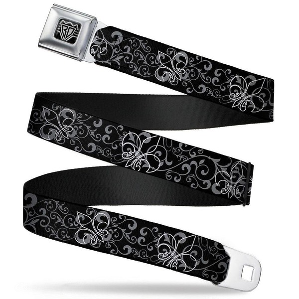 Buckle-Down Seatbelt Belt - Fleur-de-Lis Outline w/Filigree Black/Gray - 1.5" Wide - 24-38 Inches in Length