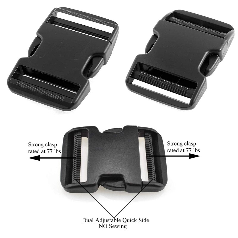 - 【NO SEWING REQUIRED & DUAL ADJUSTABLE 】 Straps Buckles Adjusts Freely and Holds Sturdily with Dual-Slot on Both Side. While the Regular Side Release Buckle Requires Sewing One Side at Least and Adjusts Only One Side at Most.