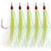 Bucktail Teaser Fishing Hooks,5pcs Saltwater Flounder Rig Stainless Steel Fishing Jig Hooks Bucktail Mylar Flash Teasers Inserted for Striper Catfish Cod Flounder Hi/Lo Rig