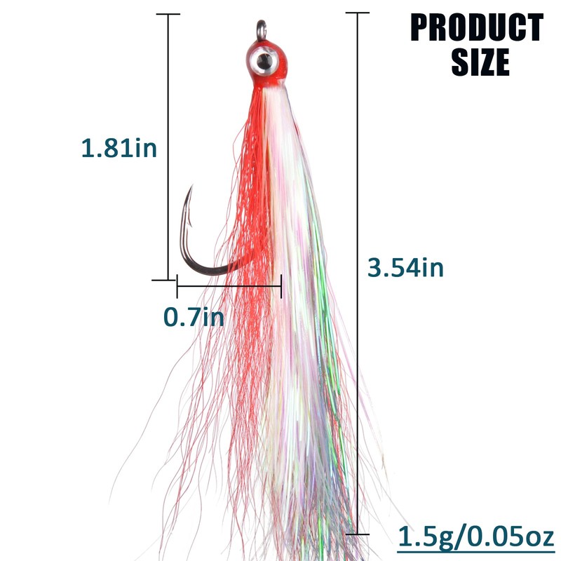 - 【WIDE USE】Bucktail teaser hooks are great for both inshore, offshore, rock and surf fishing. Catch Flounder, Seabass, Striper etc.