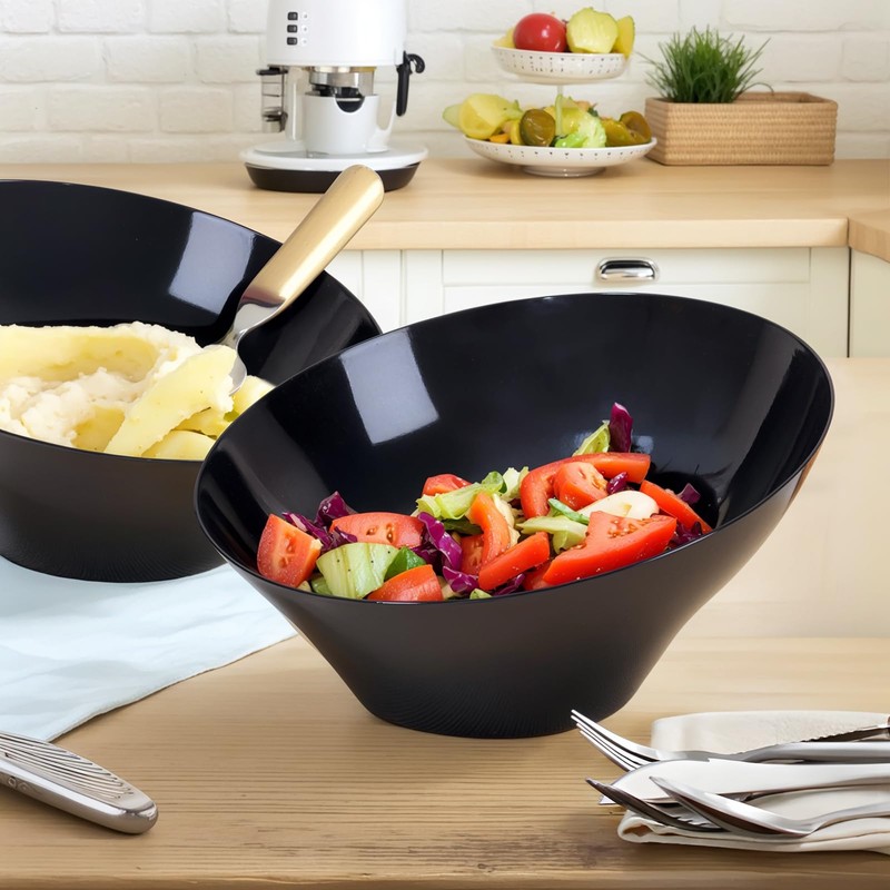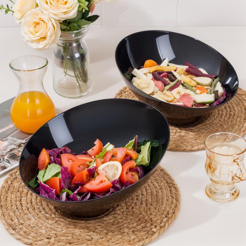- WIDE APPLICABILITY: These black salad bowls are perfect for holding salads, snacks, popcorn, chips, and other treats. The large plastic bowl is designed to hold more food
