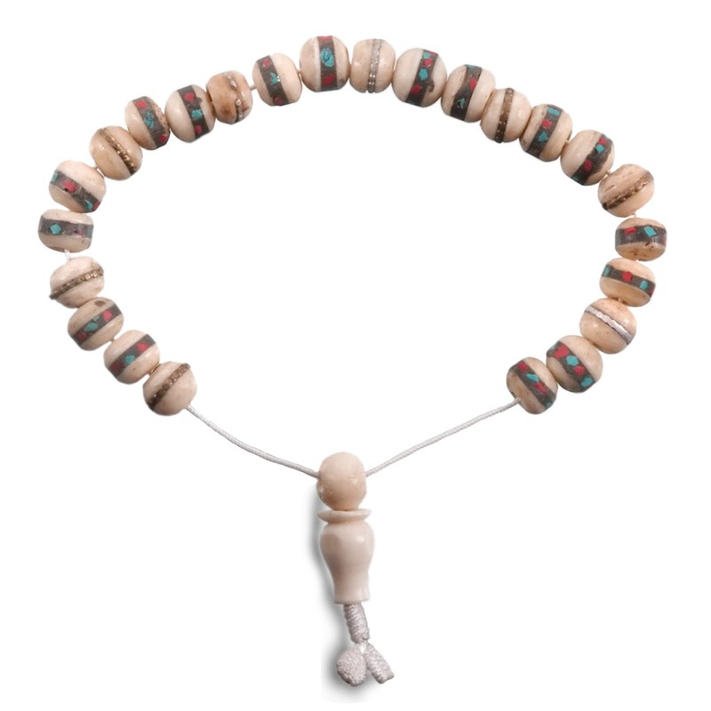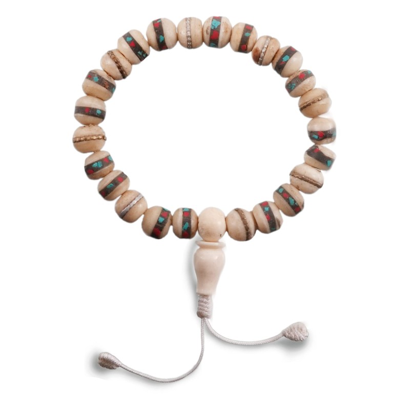 - BUDDHAFIGUREN Hand-Mala Buddhist Bracelet White Horn with Stones 10 mm