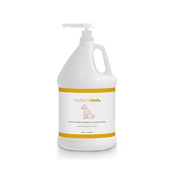 Buddy's Best Dog Shampoo for Smelly Dogs - Skin-Friendly, Oatmeal Dog Shampoo and Conditioner for Dry and Sensitive Skin - Moisturizing Puppy Wash Shampoo, Coconut Vanilla Bean Scent, 1 Gallon