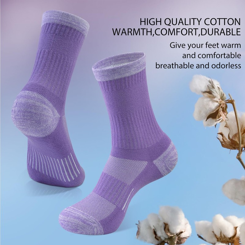 BUDERMMY Crew Socks for Women Hiking Athletic Running Walking Cushioned Compression Cotton Socks 6 Pairs (US, Numeric, 9, 11, Regular, Regular, Mixed 6 Pairs)
