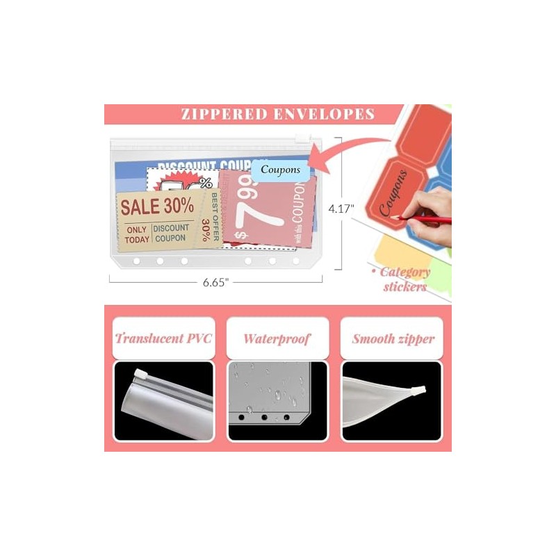 - [Budget Binder Package] Includes 1pc refillable A6 PU Leather Budget binder, 12 Pcs zipper cash envelopes, 12 Pcs expense budget sheets, 14 Pcs monthly budgets, 2 sets of 10 sticker labels, aims to meet your financial planning, money budget and storage.