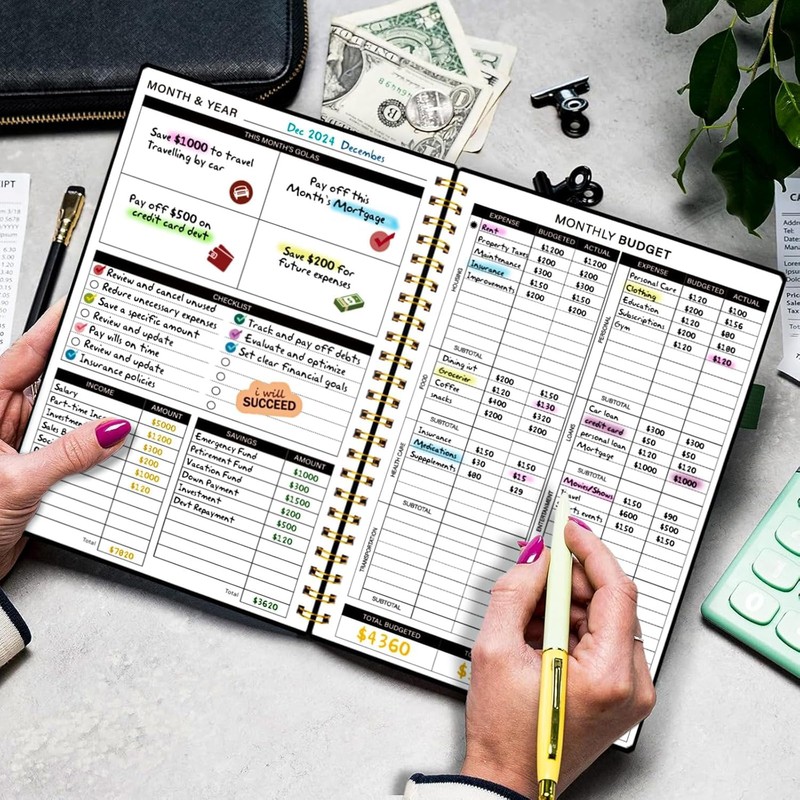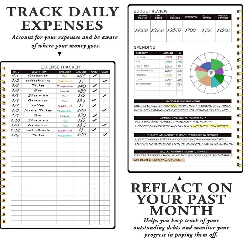 - Well-organized Layout: The budget book has clear layout and multifunctional design, including financial goals, financial strategy, saving tracker, debt tracker, expense tracker, making your financial management easy