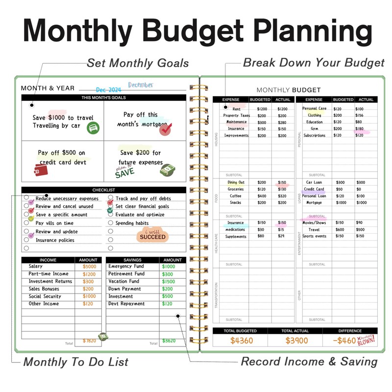 Budget Planner - Monthly Budget Book 2024 with Expense & Bill Tracker - Undat...