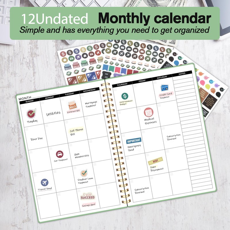 - Spacious & Customizable Layout – Each month features a full-page calendar for scheduling key financial dates, alongside three fun sticker sheets to personalize your planning experience and keep budgeting engaging