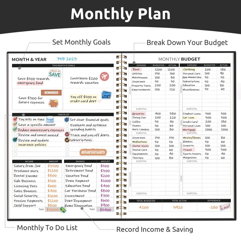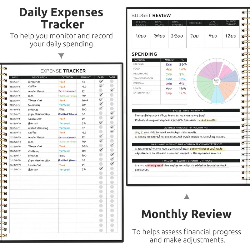 - Effective Budget Planning - Take control of your finances with the budget account book. This comprehensive planner allows you to plan and track your income, expenses, savings, and financial goals in one convenient place. With its intuitive layout and easy-to-use sections, you can stay organized and make informed decisions to achieve financial success.