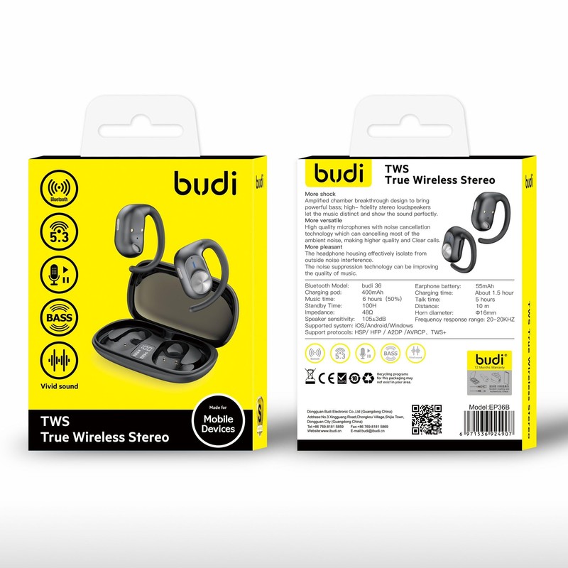 Budi - TWS True Wireless Stereo Earphones -Bluetooth 5.3, Vivid sound, Bass, controller