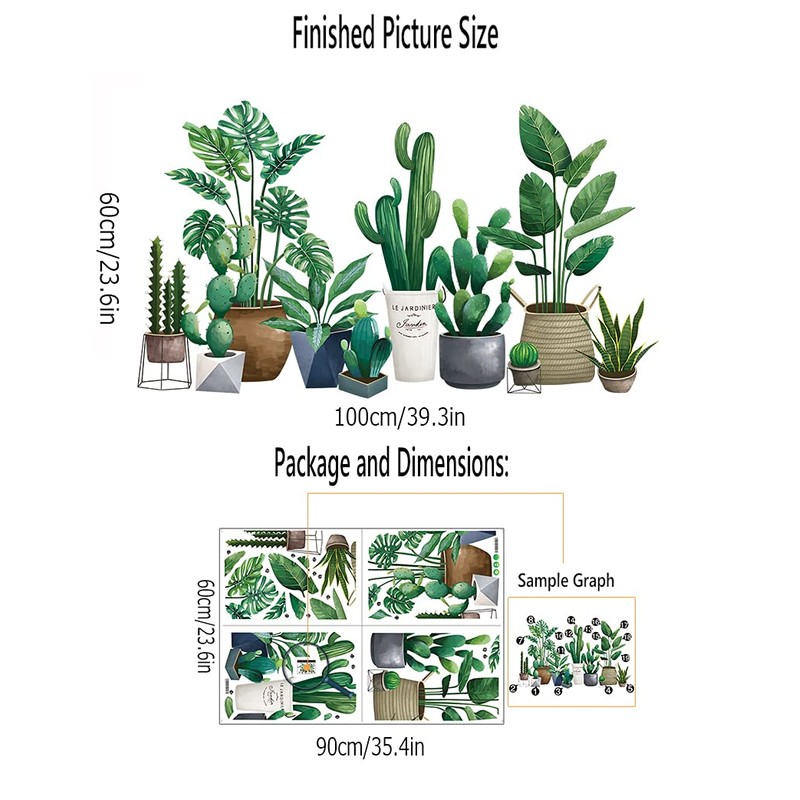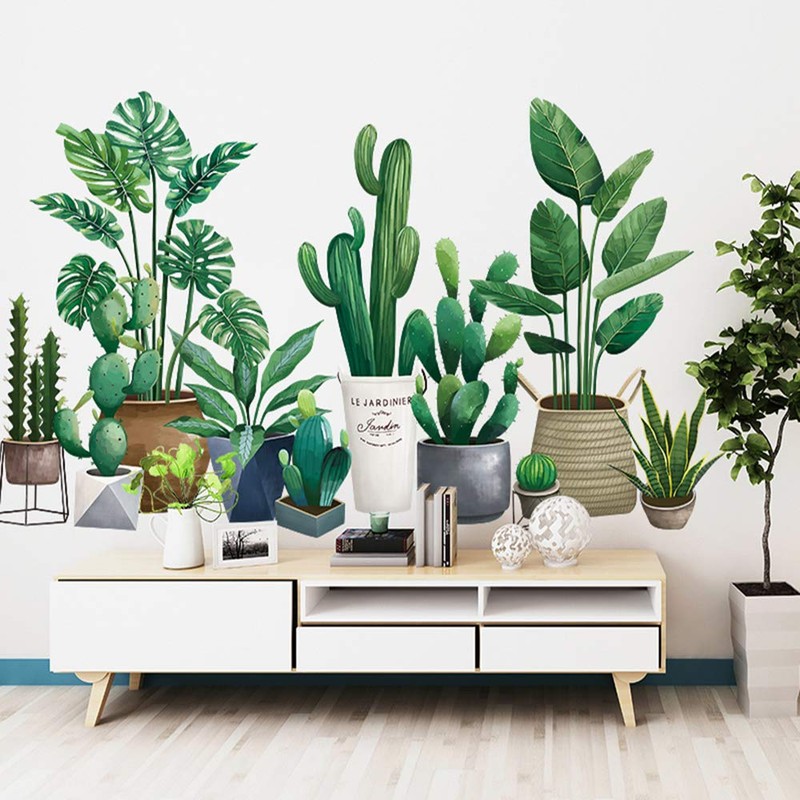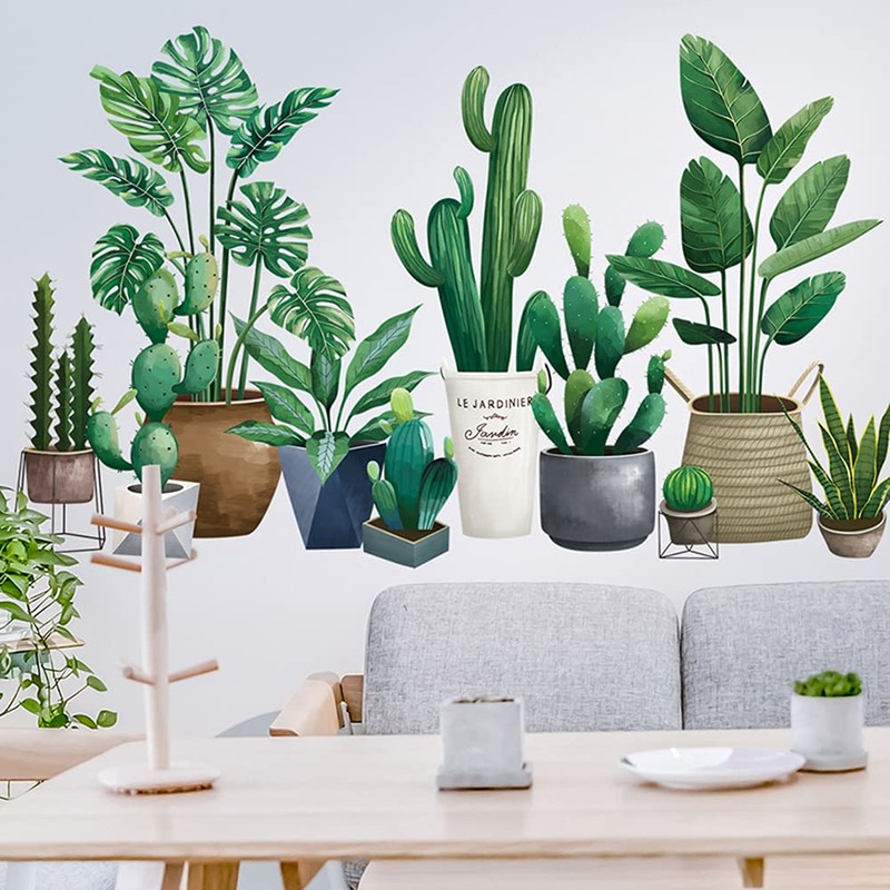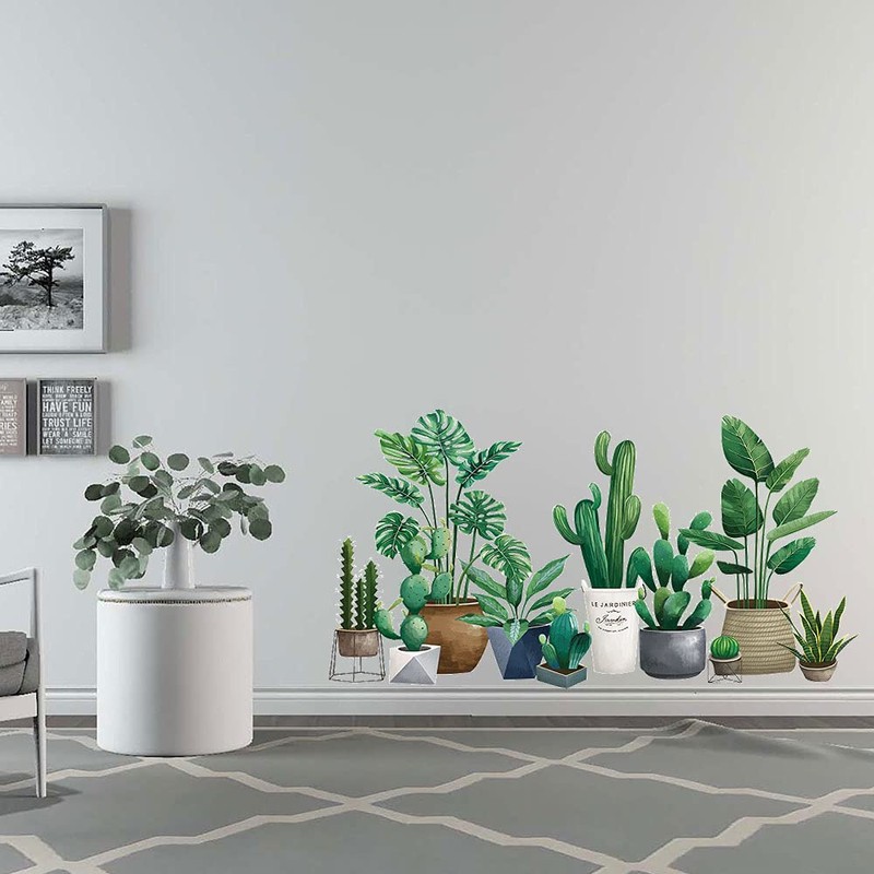 Buer Homie Wall Stickers, Green Plants Decals, Potted Plants Pattern