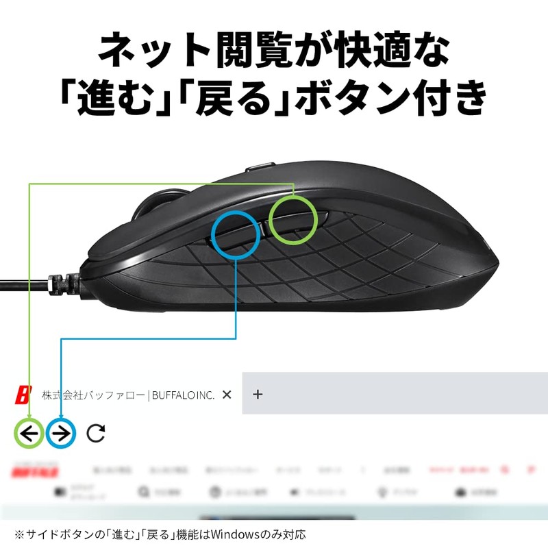Buffalo BSMBU315BK USB Mouse, Wired 5 Buttons, Back/Forward Buttons, DPI Switch, BlueLED, Black