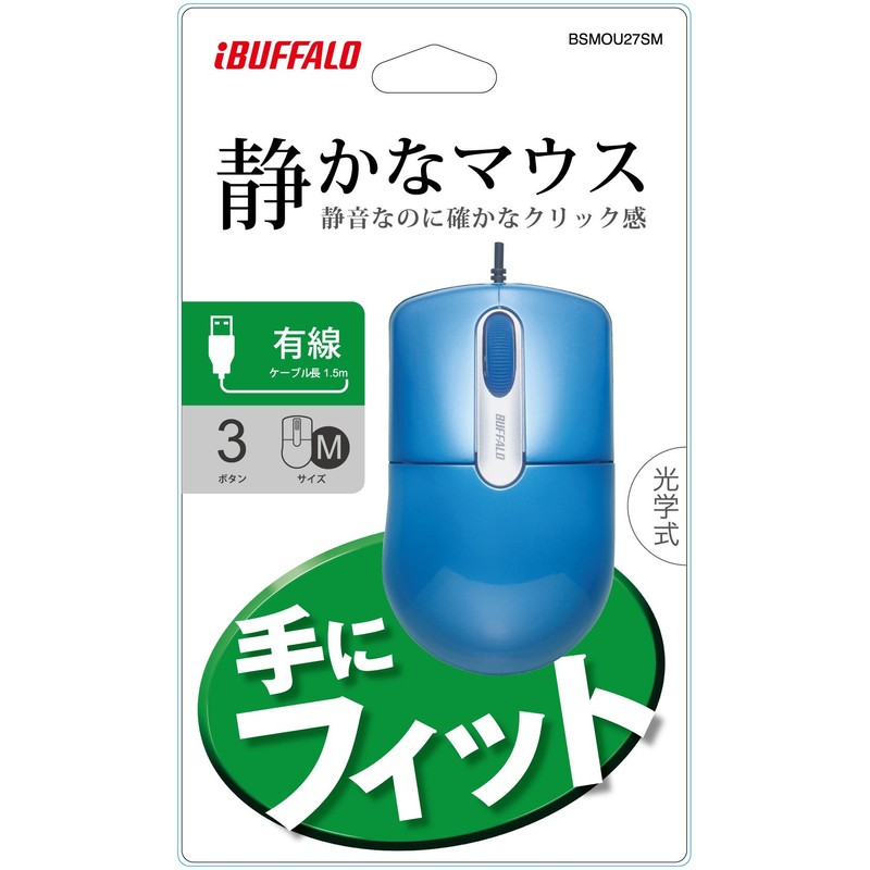BUFFALO BSMOU27SMBL Wired Optical Mouse Quiet/3-Button/Medium Blue