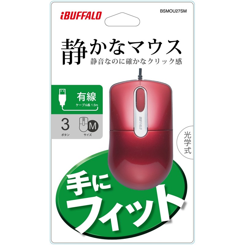 BUFFALO BSMOU27SMRD Wired Optical Mouse Quiet/3-Button/Medium Red