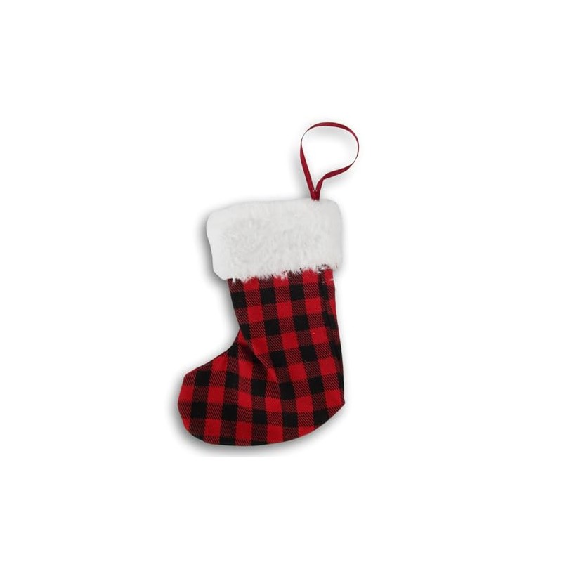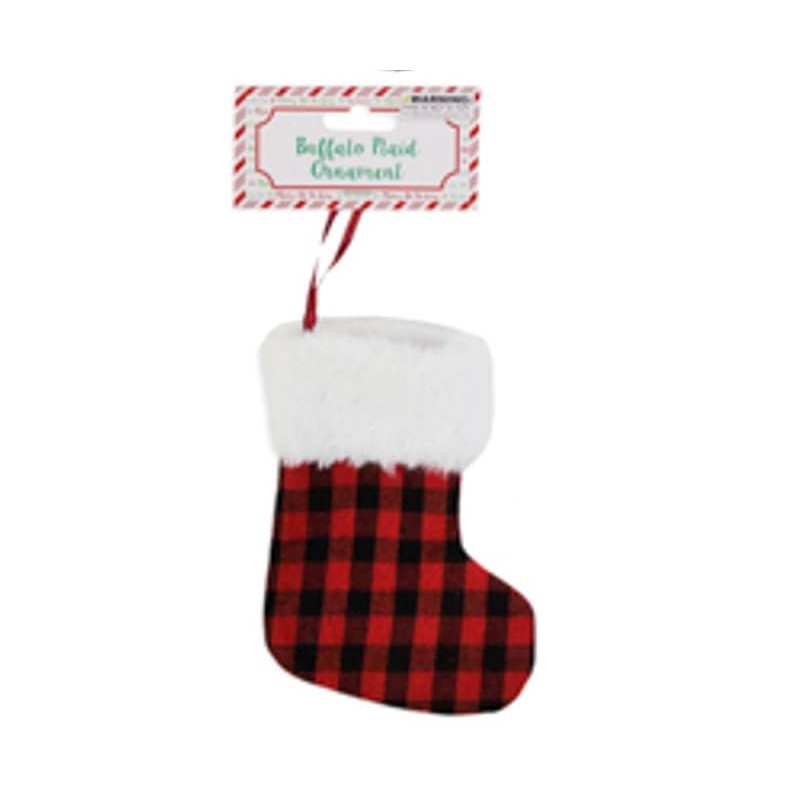 Buffalo Plaid Stocking Christmas Tree Ornament (Red & Black)