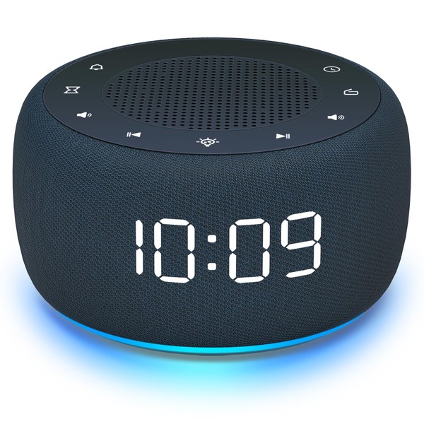 BUFFBEE Alarm Clock Radio for Bedroom - High Quality Sound for Radio, 4 Alarm Tones, 7-Colour Night Light, Full Range Display with Dimmer for Bedside Table (Navy Blue)