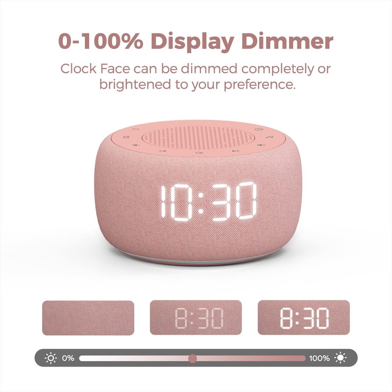 Buffbee Sound Machine & Alarm Clock 2-in-1-0-100% Display Dimmer, Under Light, Sleep Timer, Precise 30-Level Volume Control White Noise Machine