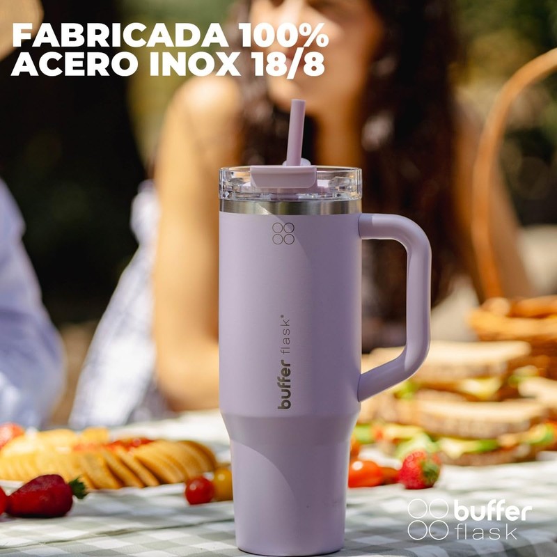 Buffer Flask - Vaso Térmico - Termo Acero Inoxidable, Termos para Agua Cafe- Regalos para Mujer - Mantiene Frio 24 hrs, Calor 12 hrs - Incluye Popote (SOAKED LILAC, 40 Oz / 1200 ml)