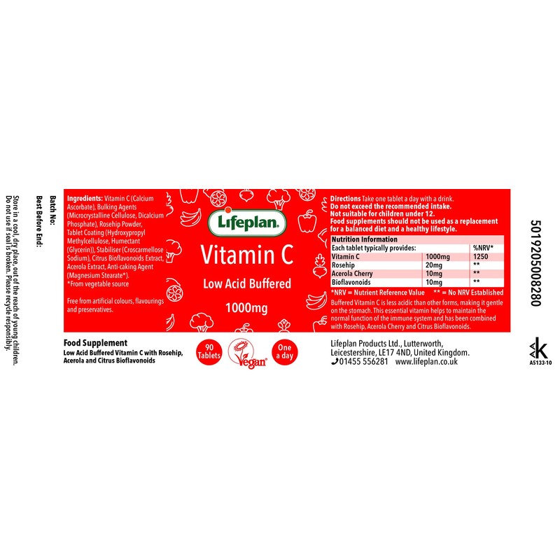 - These tablets provide 1000mg vitamin C in a buffered form to control acidity