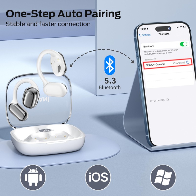 BUGANI Open Ear Headphones, Open Ear Earbuds with Immersive Stereo Sound, Clear Talk, Bluetooth 5.3 Wireless Headphones with Dual Large Driver, 30H Playtime, Waterproof Sport Earbuds for Running