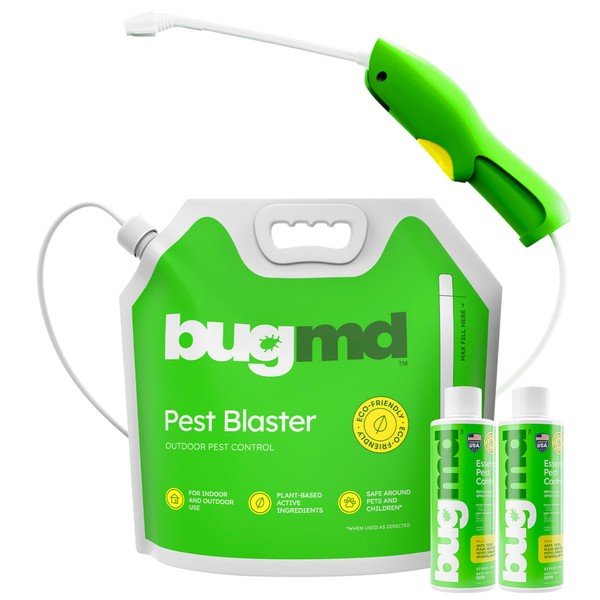 BugMD Blaster Kit - 2 Pack Pest Control Essential Oil Concentrates 3.7 oz and 1 Pest Blaster - Plant-Powered Bug Spray for Home, Insect Killer, Ant Killer for House, Flea Spray for Home, Roach Spray