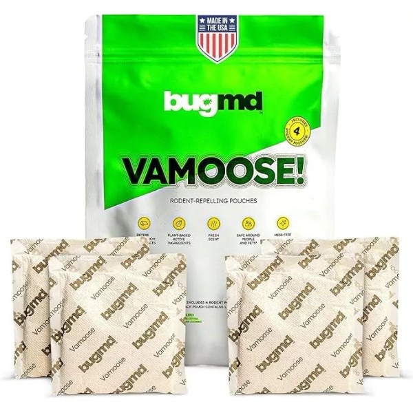 BugMD Vamoose - Rodent Pouches (4 Pack), Plant-Powered Rat.. 1 Pack, 4 Pouches.