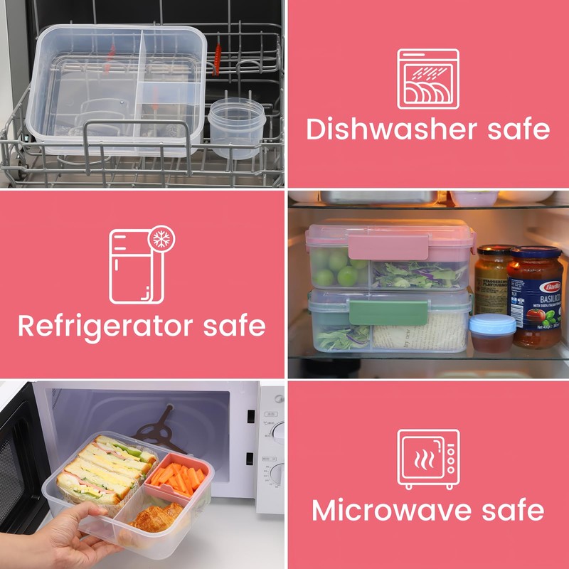 - REMOVABLE COMPONENTS: This Salad Lunch Container offers a practical, split design with 2 removable compartments and a small sauce container. You can easily mix and match different food items, making it perfect for salads, sandwiches, burgers, fruits, and vegetables