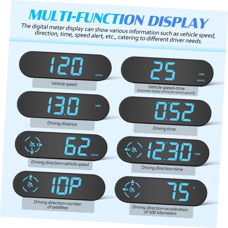 - Rich functionality: more than speed display, the car display shows your travel distance, time, direction, and warns you when you are or driving tired,windshield speedometer,car