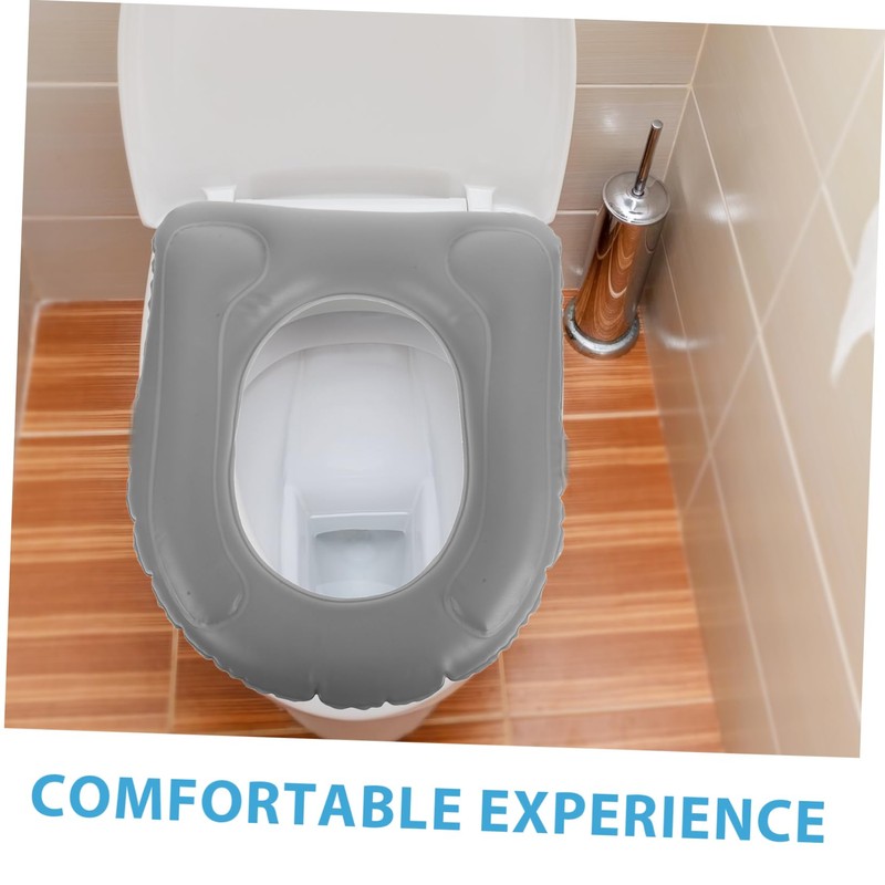 bathroom toilet seat cushion Enhance your bathroom comfort with this inflatable toilet seat cushion.universal toilet seat The easy-to-clean PVC material ensures use and clean.toilet seat accessory Ideal for households with elderly members or those recovering from surgery, it offers additional support and comfort.inflatable cushion The soft, padded cushion provides a luxurious feel, while the suction cups keep it securely in place