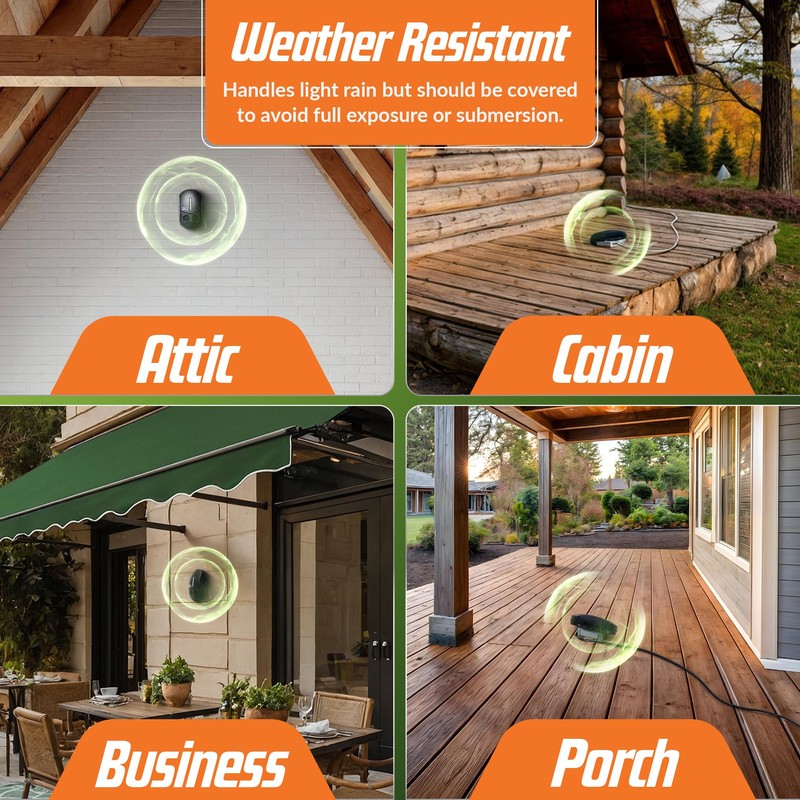 - Dual Bat Repellent Speakers for Maximum Coverage: Our bat repeller features dual high-powered bat deterrent speakers, delivering a robust and widespread ultrasonic effect covering up to 7000 square feet of open room coverage