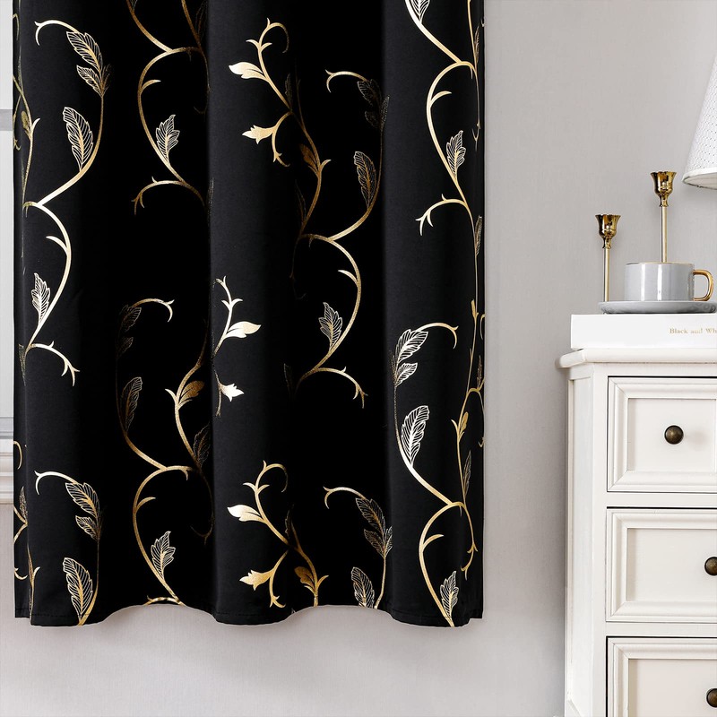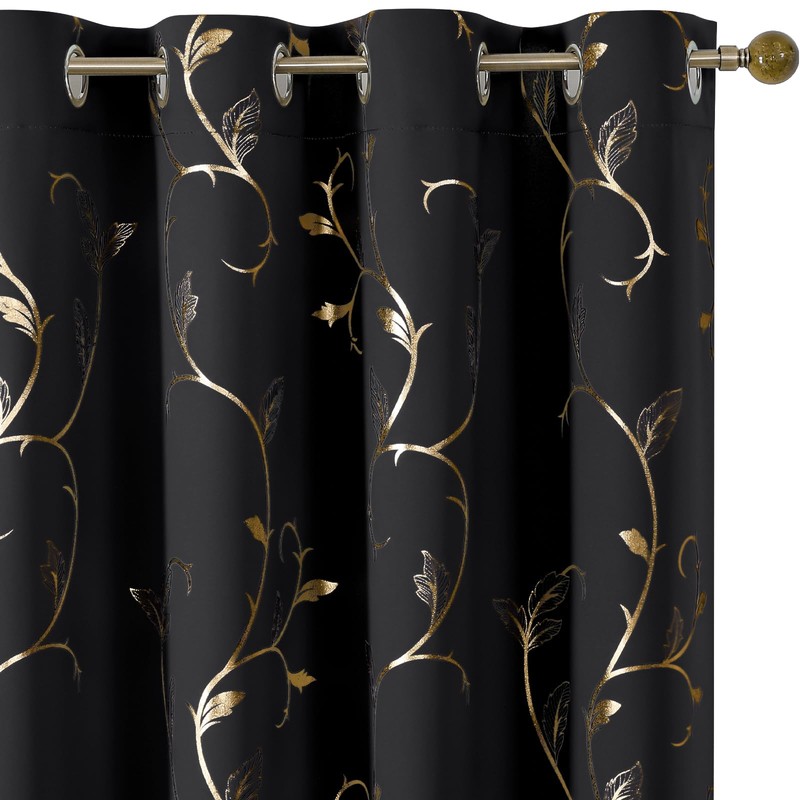 - GOLD VINE DESIGN: BUHUA's unique Gold Vine Foil Print Grommet Curtain pattern design, ideal for dining room, home office, living room, classroom, hallway, bedroom, kids room, kitchen, study and so on