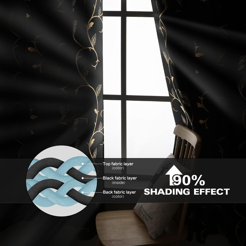 BUHUA elegant designed vine printed blackout curtains are the best choice to your home decoration. Our grommet thermal insulated blackout curtains are available in rich colors and big range of sizes( 52W×45L, 52W×54L, 52W×63L, 52W×72L, 52W×84L, 38W×45L, 38W×54L, 38W×63L, 38W×72L, 38W×84L) . These black out window curtains are suitable for the bedroom, living room, dining room, kids room, nursery, kitchen, office or other public place.