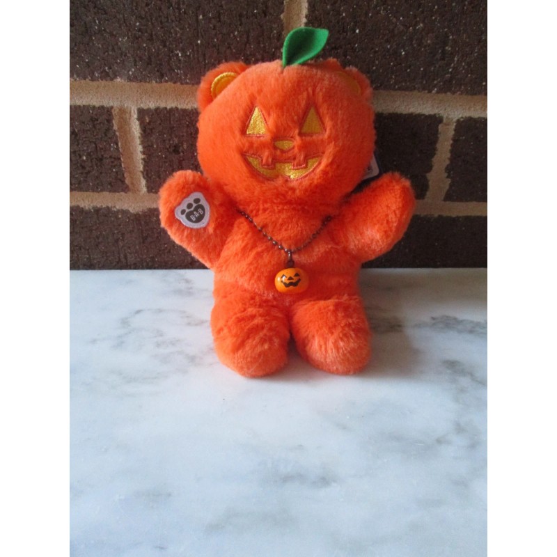 Build-A-Bear Mini Beans Pumpkin Bear 7" Tall-Pumpkin Bell Charm Necklace