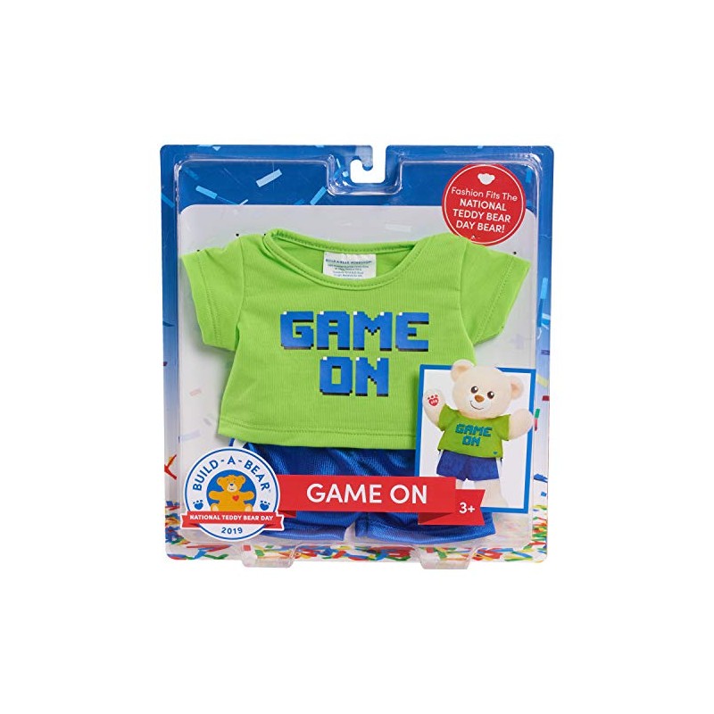 Celebrate National Teddy Bear Day with the Game On Fashion Set from Build-A-Bear Workshop. Bring home this adorable two-piece shorts and tee-shirt outfit. Each Fashion Set fits The Build-A-Bear Workshop National Teddy Bear Day Bear (sold separately). Collect them all including Game On, Unicorn, and Rainbow (each sold separately). Ages 3+