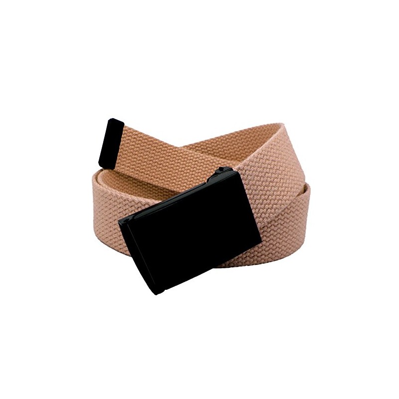 Build A Belt 1.25" Wide Black Flip Top Buckle with Canvas Web Belt (Boys Large Khaki)