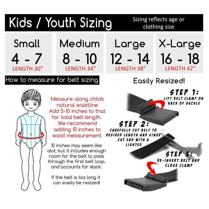 - Size chart can be found in the listing images. Total belt length is in "Red Font"