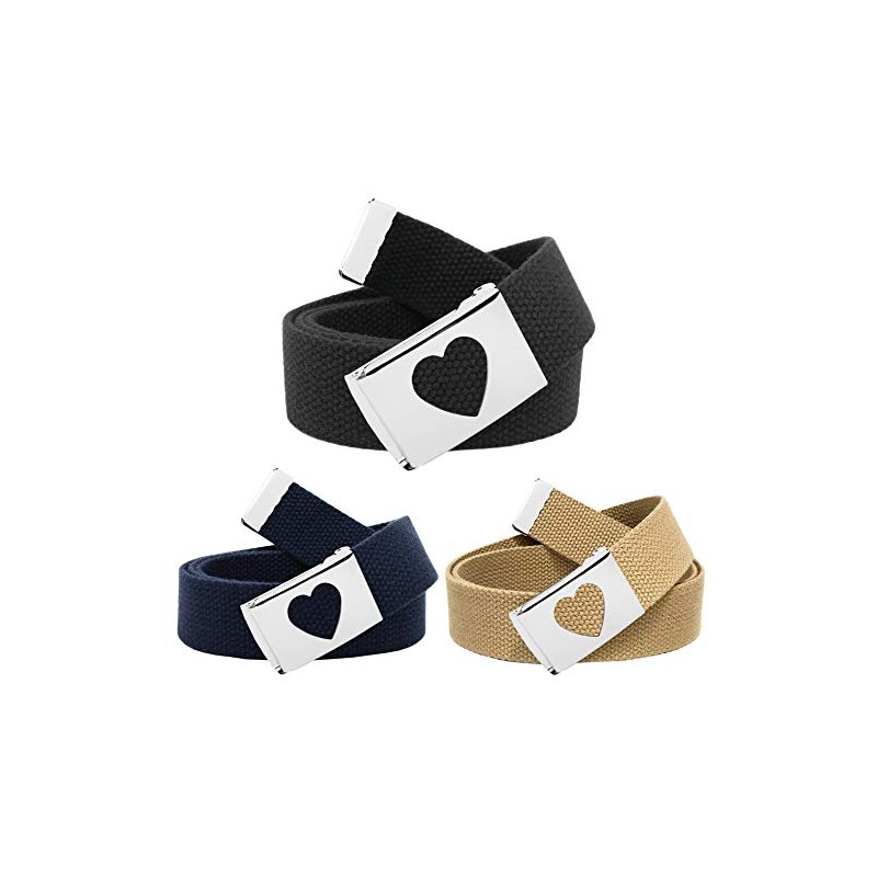 Build A Belt 1.25" Wide Heart Silver Flip Top Belt Buckle with Canvas Web Belt (Girls 3 Pack - Medium Black, Navy, Khaki)