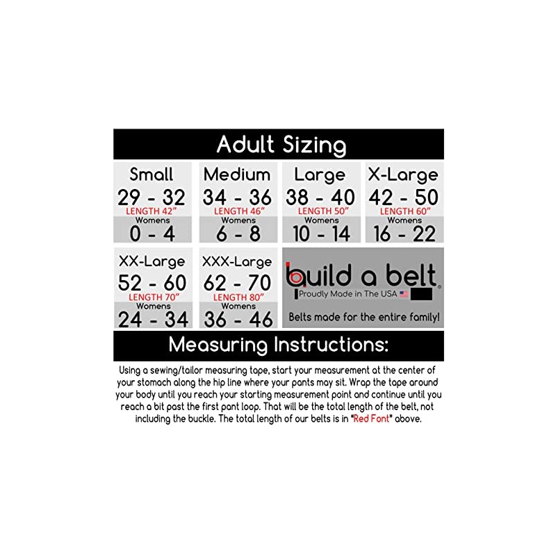 • Size chart can be found in the listing images. The total belt length is in "Red Font"