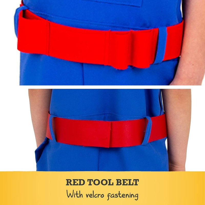 - The construction worker or construction worker children's costume consists of polyester bib and dungarees with red tool belt/pocket and an adjustable safety helmet