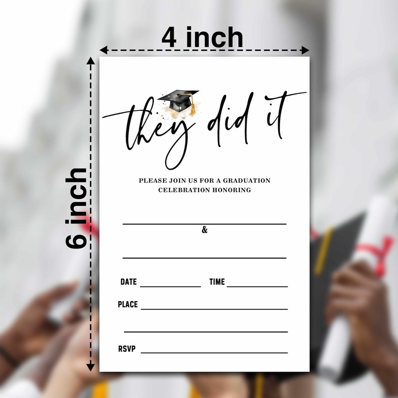 - 【SIZE & QUALITY MATERIAL】The size of the graduation invitation card is about 4x6 inches, made of coated paper, printed on one side, rich in color and not easy to fade.