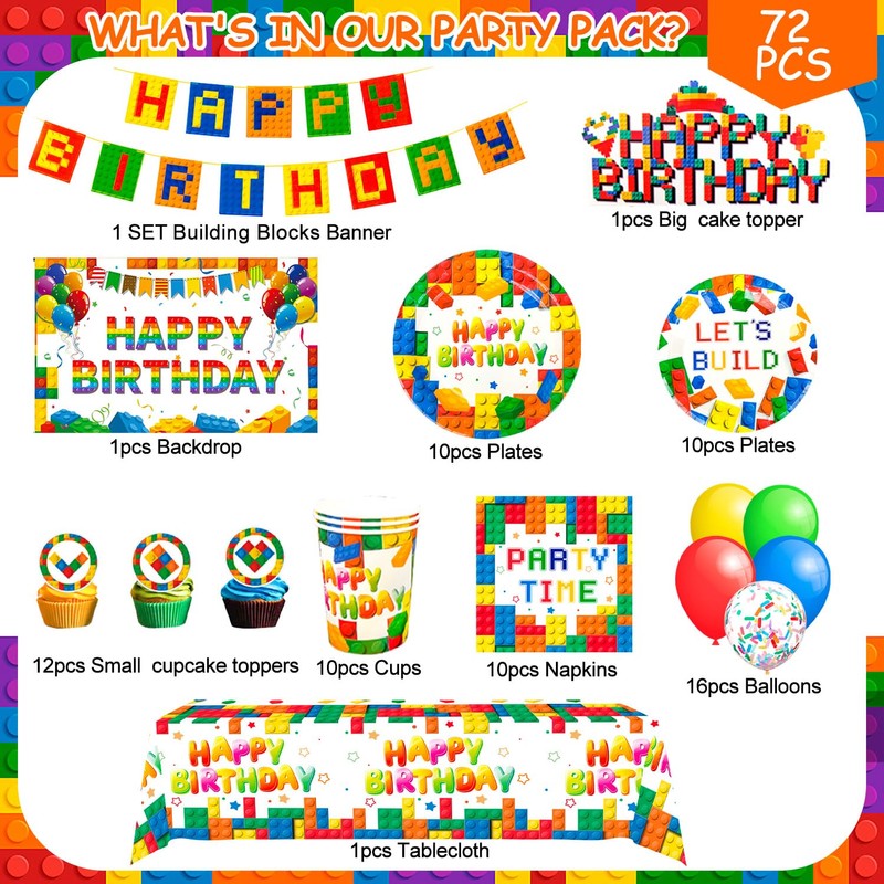 • Building Block Party Decoration Building Block Birthday Banner Building Block Party Supplies Building Block Tablecloth Building Block Party Plate Building Block Balloons Building Block Birthday Cake Decoration