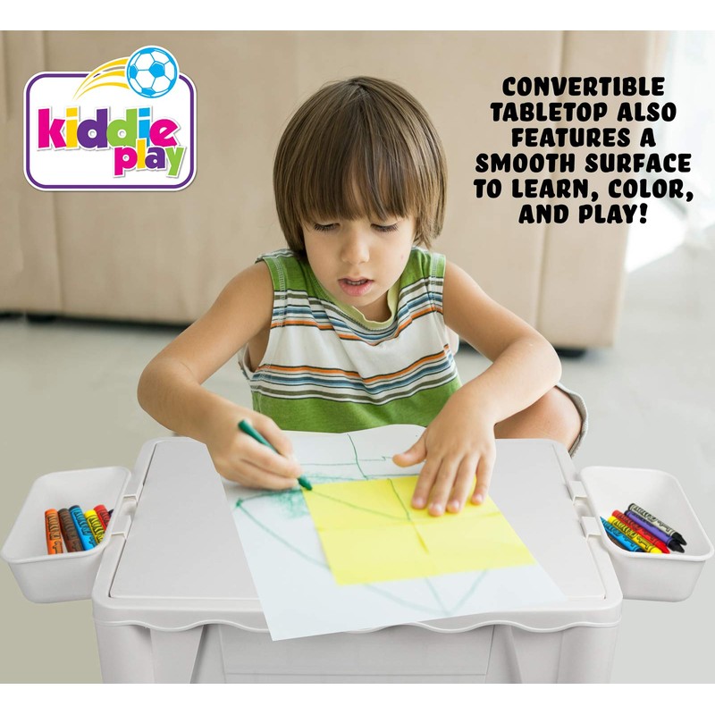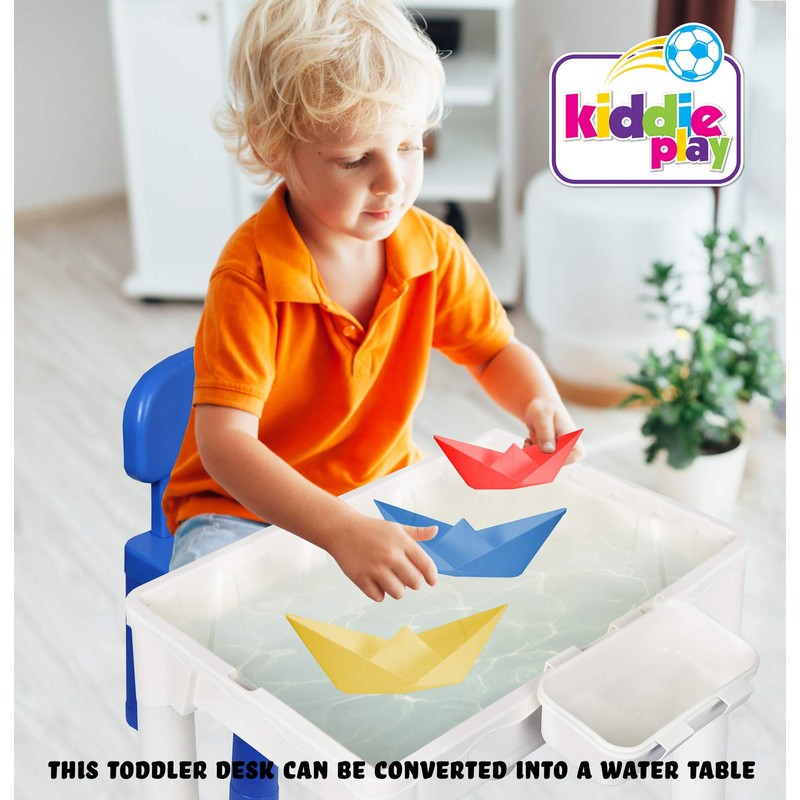 - This Toddler desk can be converted into a water table, sand table, and a great storage space inside for your building blocks or any toys!