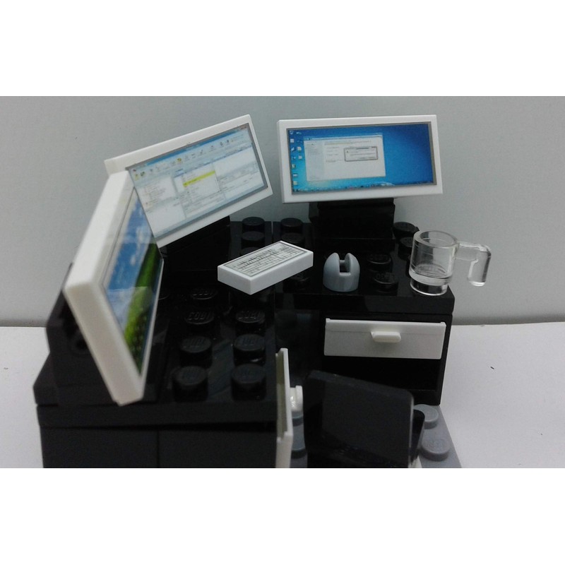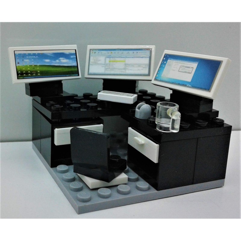 - [BEST LEARNING TOY]: Custom Toys & Hobbies are building bricks block L desk & Computer setup the best choice for your children to learn about the basic desktop system. This basic build bricks three computer set helps your children be imaginative and creative in their life about technology & internet. Miniature Kids Play City Town Village. Lots of added fun!