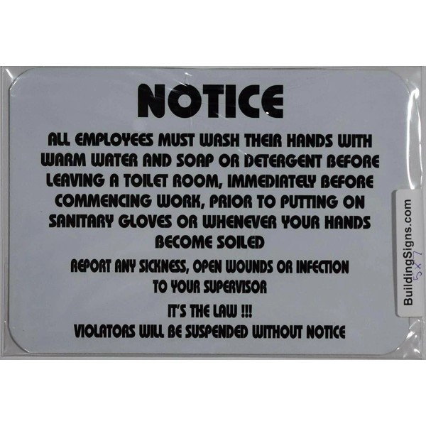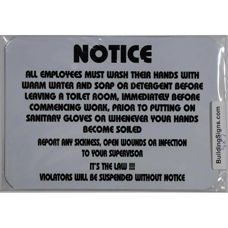 Buildingsigns.com Notice All Employee Must WASH Their Hands with Warm White,5X7)-REF