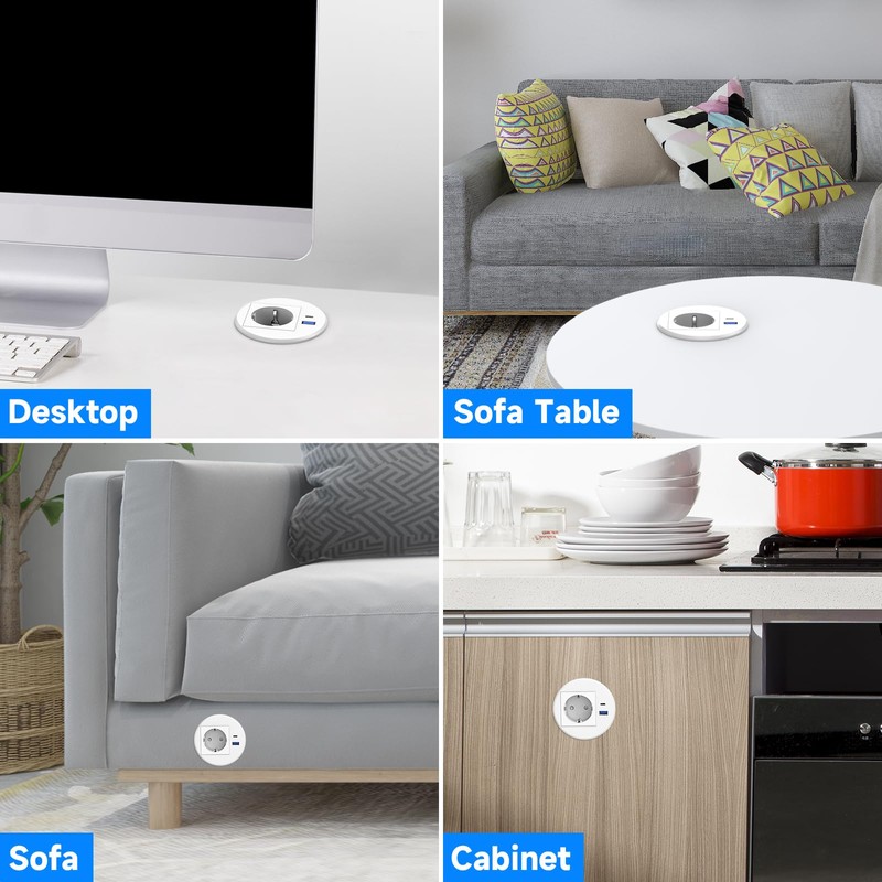 - CONVENIENT & SPACE SAVING - The hidden desk socket features an elegant design that integrates seamlessly into your desk or workspace and provides easy access to power and charging options without cluttering up your space.