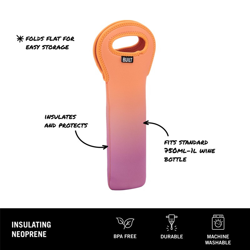 BUILT One Bottle Stain- Tear- and Water-resistant Wine Tote, Lightweight Insulated and Reusable, Protective Carrier for Home Travel, Purple Sunset